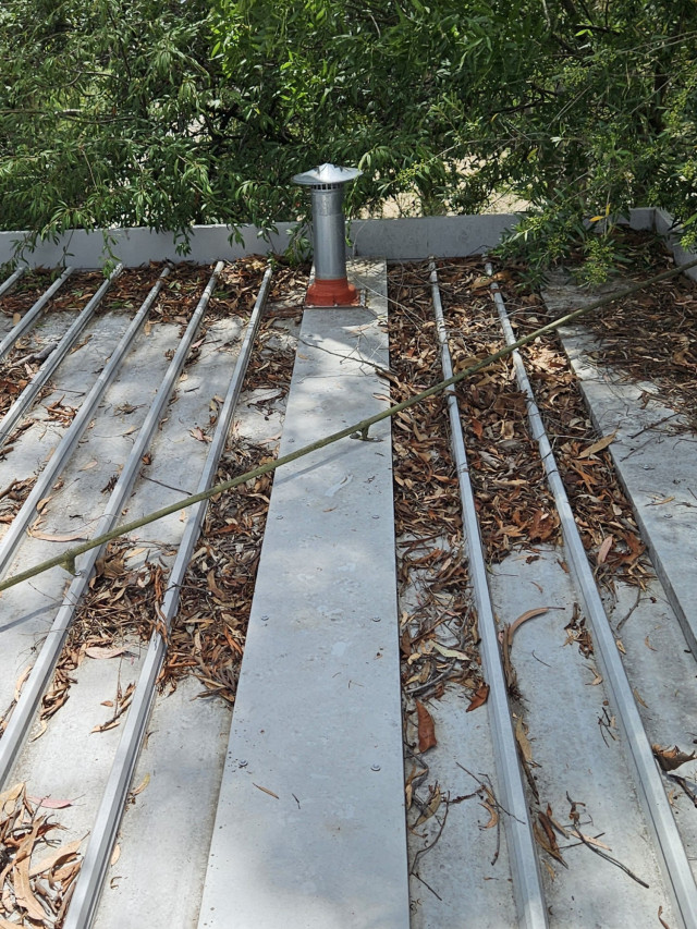 Roof debris can build up behind parapets and box gutters